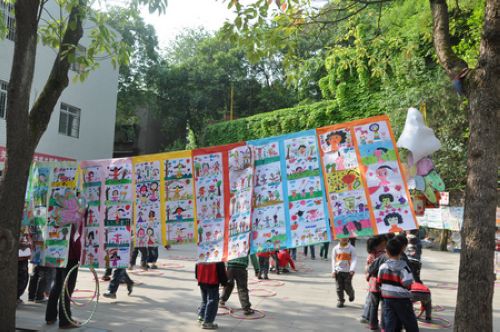 从幼儿园大门到操场四周,全是幼儿们的绘画作品。每一幅画都是一个故事,每一幅画都是一个幼小心灵的写照,充满着他们的童真和童趣。水彩画、种子贴画、线描画,还有手工作品纸飞机、盒子变变变(机器人)等,作品丰富多彩。孩子们用他们稚嫩的双手和独特天真的想象力,描绘着他们眼中的世界,让家长和参观者仿佛回到了童年时光。