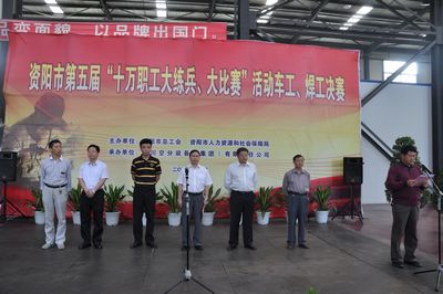 由资阳市人力资源及社会保障局、资阳市总工会主办,我公司承办的资阳市第五届“十万职工大练兵、大比赛”车工、焊工决赛于5月26日在我公司举行。中共资阳市委常委、组织部部长康俊,四川省总工会经济部部长朱廷君,副部长范会军,资阳市人社局调研员林五一,资阳市人民政府副秘书长邓继红出席开幕式,资阳市总工会副主席谢龙飞主持。(集团)公司副总经理王大能出席开幕式并致辞,工会主席陶德大以及来自雁江区、简阳市、乐至县、安岳县及各企业的参赛选手、裁判员和工作人员出席。