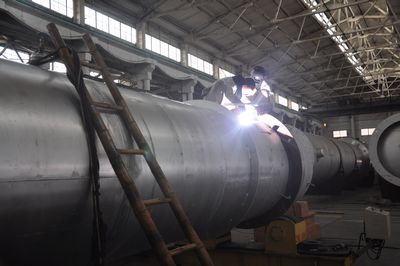 在管理人员周密的生产计划中,各班组也明确了生产任务。氩二组主要承担下塔和主冷蒸发器的焊接任务,由于人员出差,小组只有肖红军、郑显林两名氩弧焊工。他们不怕苦、不怕累,目标明确,分工仔细,工作紧张而有序。经过一个月的艰苦工作,8月25日,小组完成了焊接任务。钣八组承担了中海油粗氩塔、宁波空分下塔及主冷的制造任务,产品多,任务重。代理组长陈勇精心组织,调配得当,尽管天气炎热,但小组仍然加班加点工作。小组完成了中海油粗氩塔的装配任务后,又立即进入了宁波空分的筒体对接和塔板拼制。