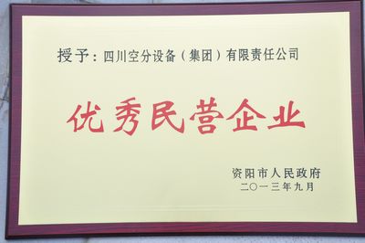 9月23日,资阳市推进民营经济发展工作会在资阳召开,会议总结了资阳市民营经济发展经验,安排部署了下一步工作。资阳市委副书记、市政府市长邓全忠,市委副书记王荣木等领导出席。会上,中共资阳市委常委、市政府副市长蒋林宣读了“资阳市人民政府办公室关于表扬全市优秀民营企业的通报”,对资阳市20户优秀民营企业给予了表扬,四川空分设备(集团)有限责任公司也在受表扬企业之列。