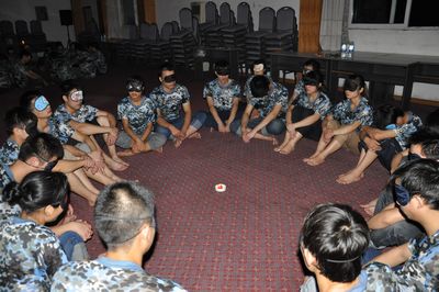 最后的一个训练项目是“巅峰对决”。要求每个团队在最短时间内完成从1到50的连续报数,活动采取团队两两对决,哪个团队率先突破5秒就终止比赛,每轮PK团队落后,连长受罚 ,用这种方式来鼓励自己的团队:我们不是一个人在战斗,我们是一个团队共同在战斗。在第五轮的时候,英雄连以4秒08的优异成绩突破5秒终止了比赛,其他团队也仅以微小的的差距落后。训练让大家看到了自己的潜能,明白了表面上看起来不可能的事,其实并没有想象中的那么可怕,只要用心去做,不可能的事都能成为可能。