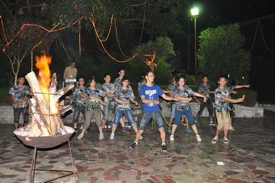 到达训练营地后,队员们分成了冲锋连、英雄连、野狼连和飞鹰连四个带有霸气和野性名称的团队。素质拓展训练的主要目的就是培养团队精神、拓展个人素质。
