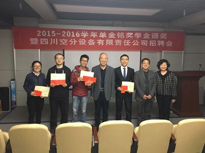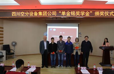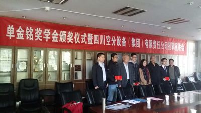 2016年11月中旬,(集团)公司董事长、总经理、党委书记单金铭连续第12年前往华中科技大学、浙江大学和西安交通大学发放“单金铭制冷低温奖学金”并讲课,鼓励青年本科生、硕士研究生、博士研究生献身低温事业,开发世界领先低温技术。