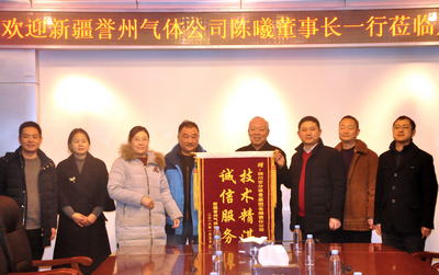 1月6日上午,新疆誉州气体制造有限公司董事长陈曦、总经理张军英一行三人专程来到我公司,送来一面锦旗:技术精湛,诚信服务。我公司领导单金铭、谢波等热情迎接了客人,双方进行了友好交流。