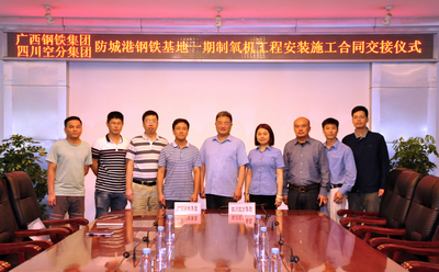 5月17日,(集团)公司与广西钢铁集团有限公司就广西防城港钢铁基地一期制氧机安装施工工程,在集团办公楼会议室举行了合同交接仪式。广西钢铁集团有限公司制氧厂厂长凌波、四川空分集团工程公司副总经理李之健、市场总监雷娟等出席仪式。